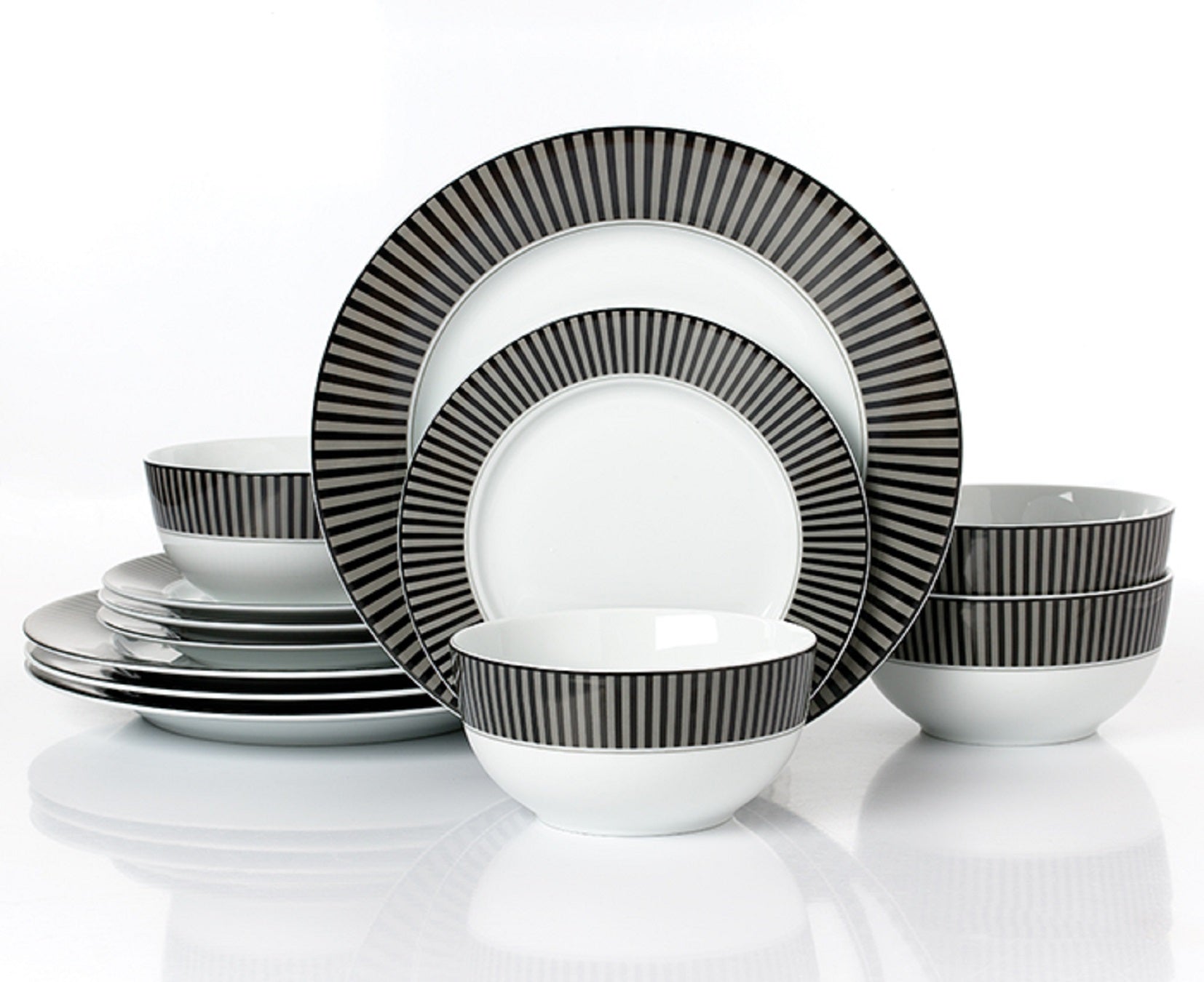 Belmont Black Stripe Porcelain Dinnerware Set, 12 Pieces