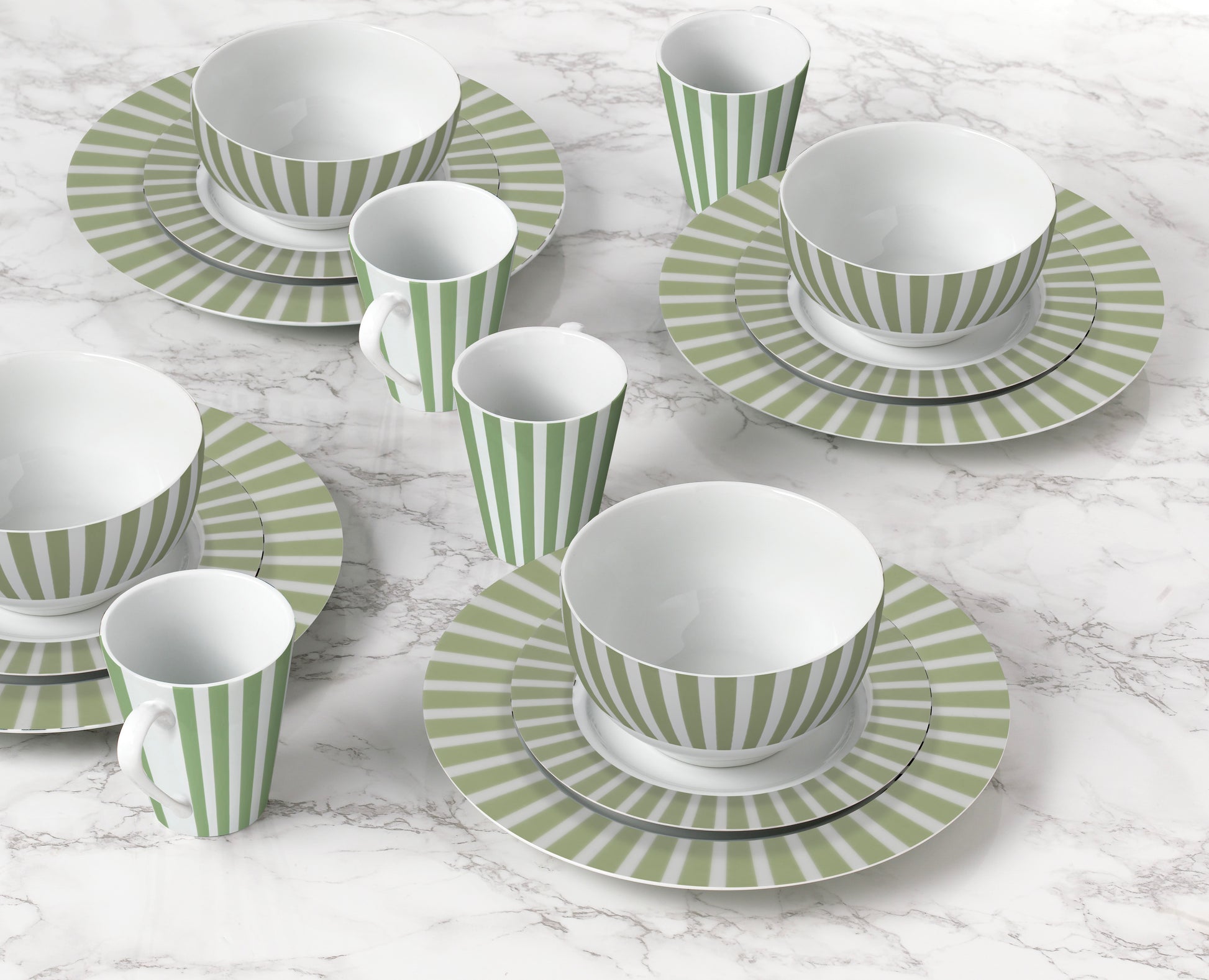 Green Split Stripe Porcelain Dinnerware Set, 24 Pieces