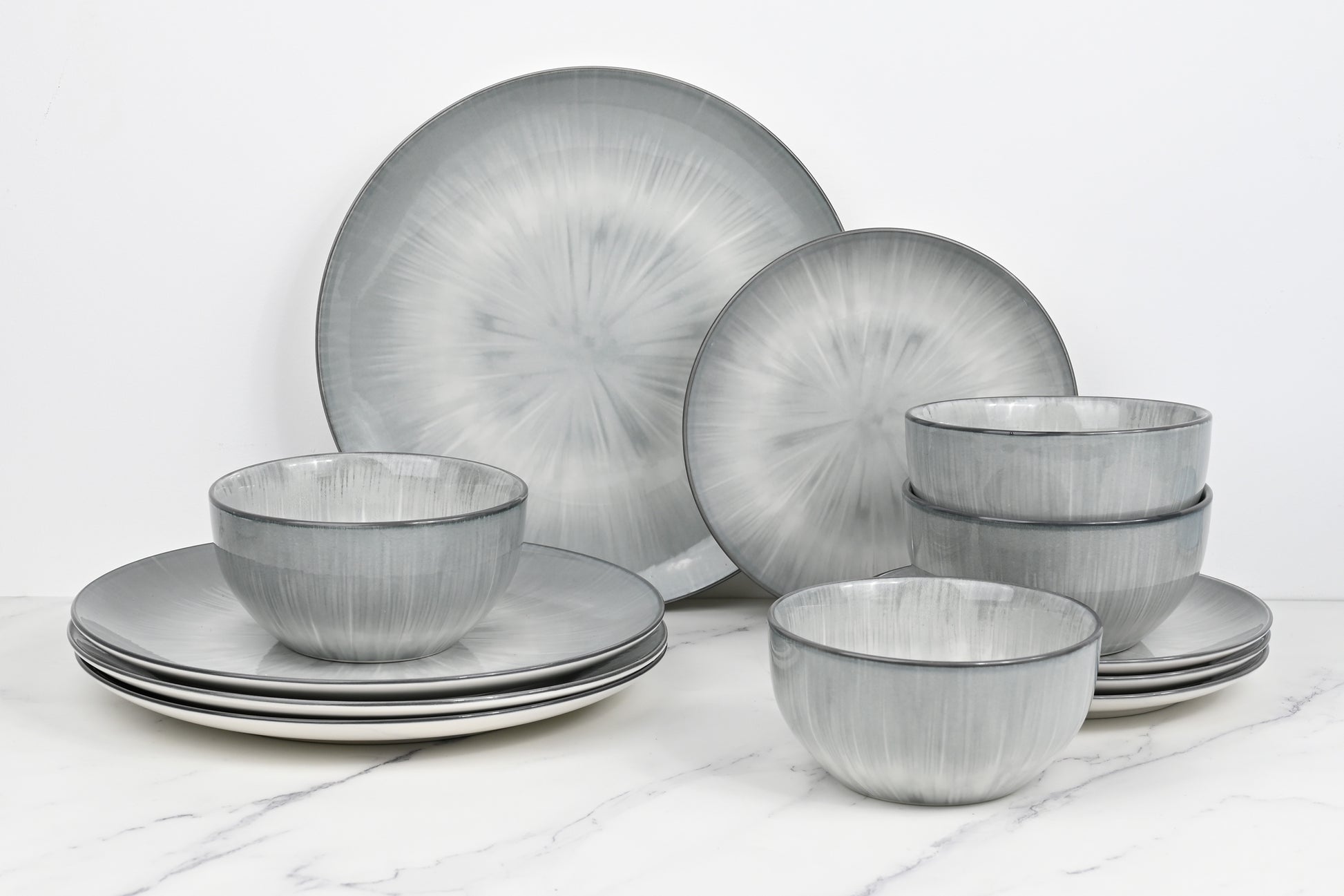Grey Star Reactive Glaze Porcelain Dinner Set, 12 Pieces