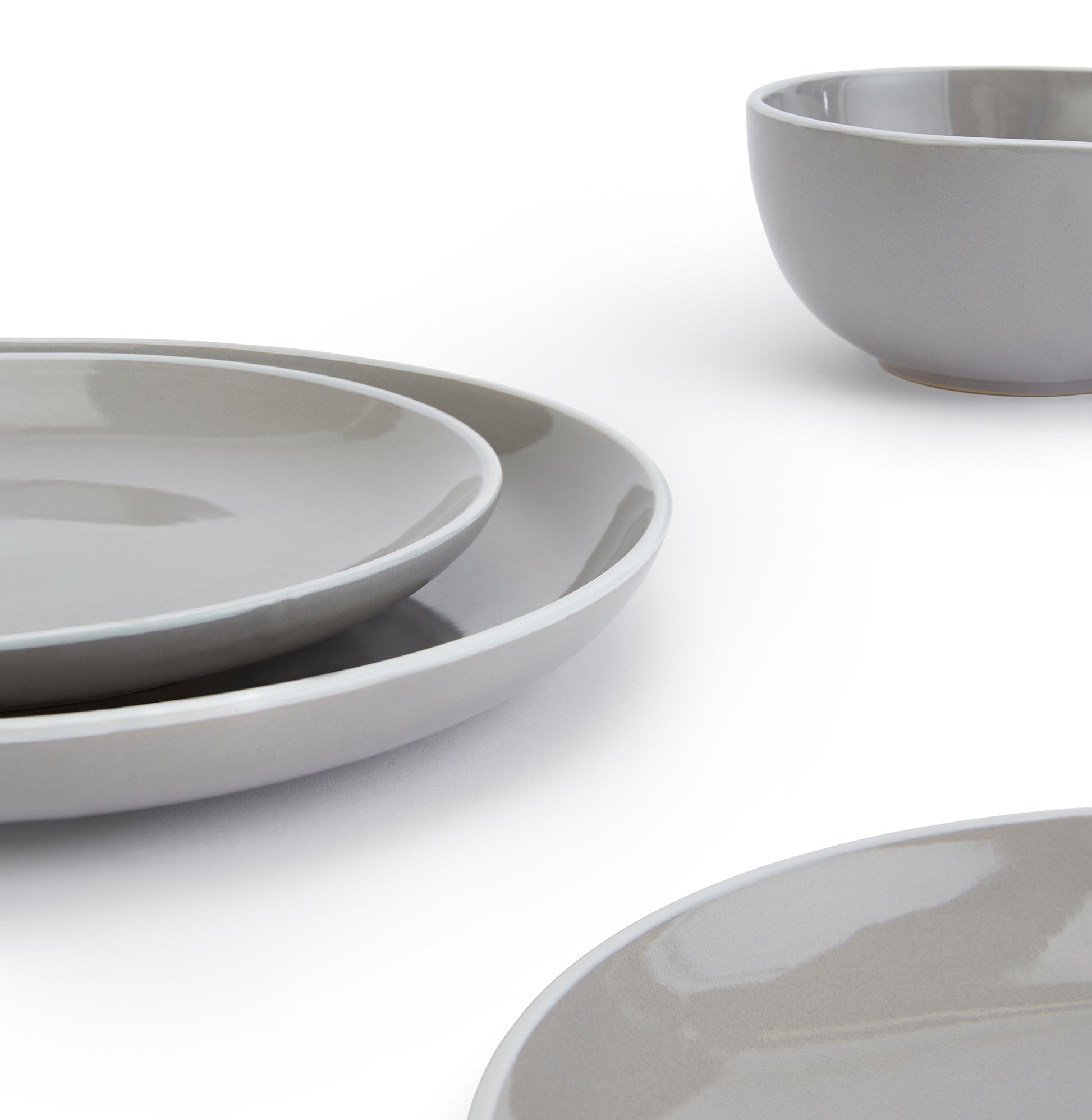 Waterside Grey Stoneware Dinnerware Set, 12 Pieces