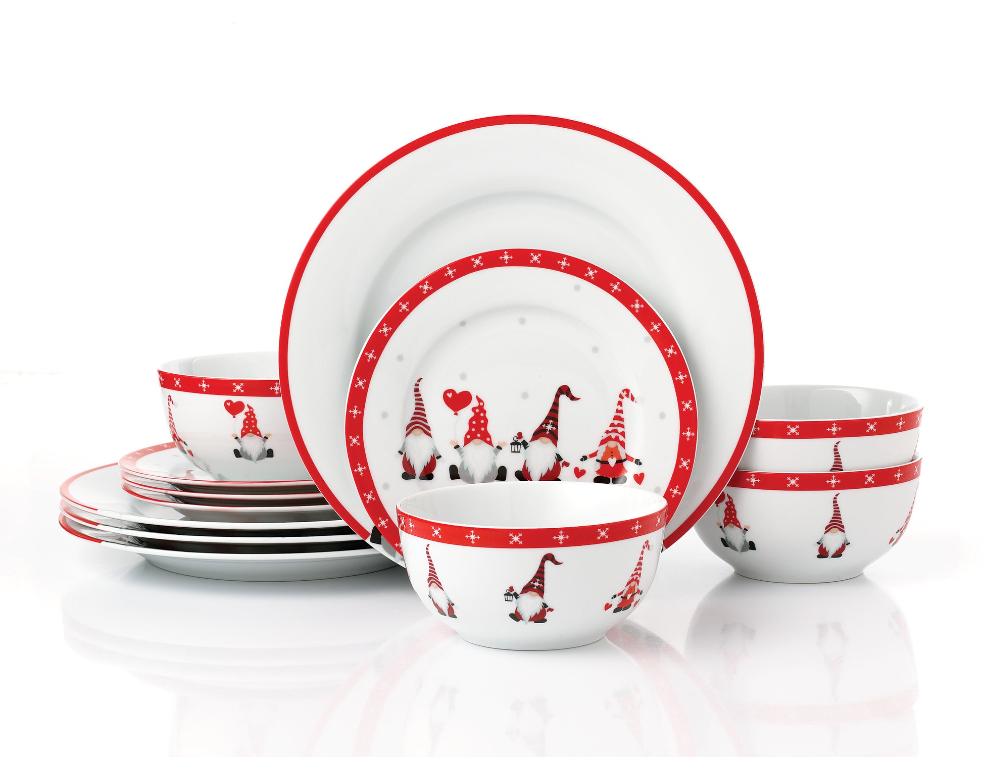 Nordic Gnome Porcelain Dinner Set, 12 Pieces