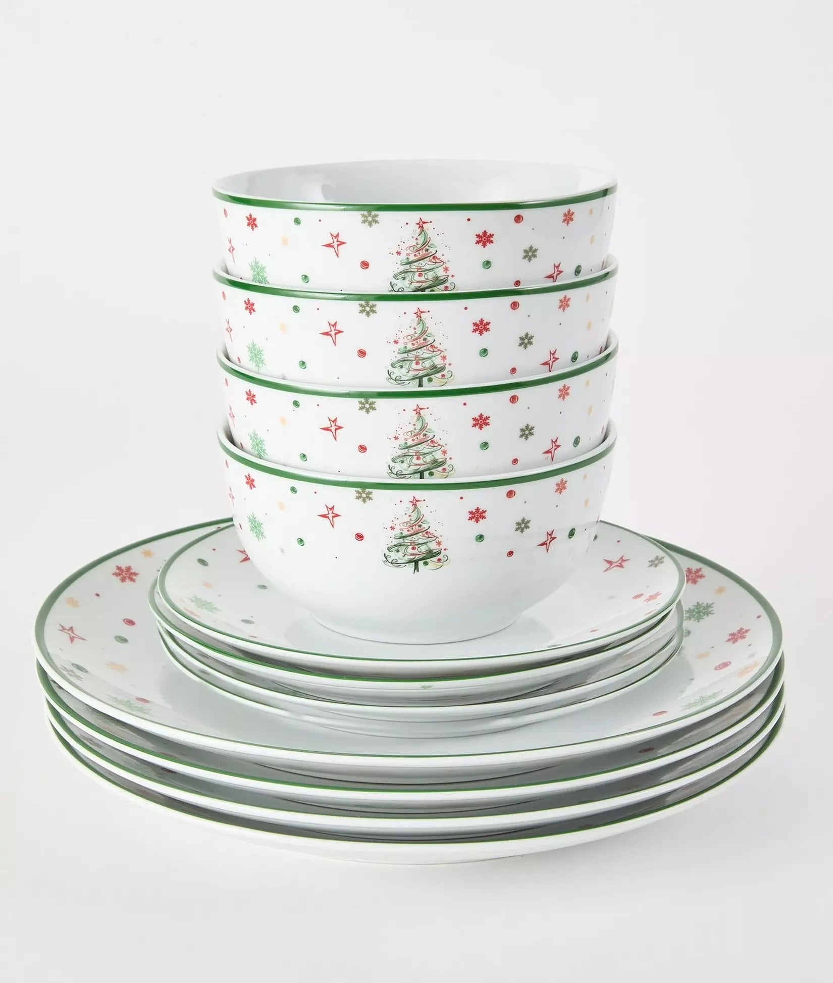 Xmas Tree Porcelain Dinner Set, 12 Pieces