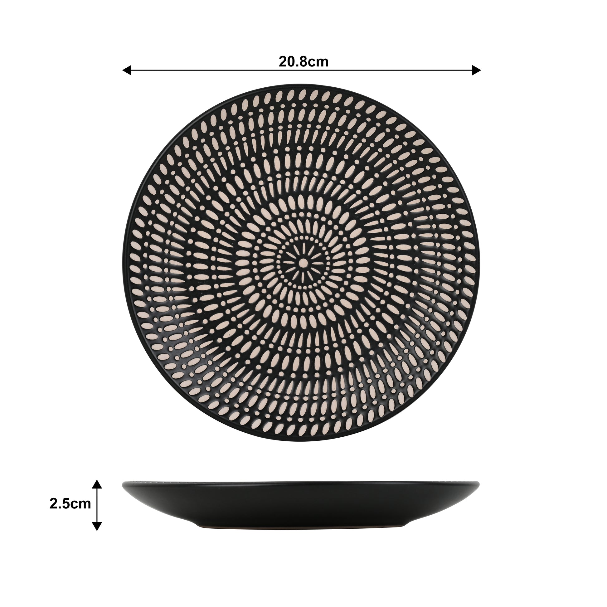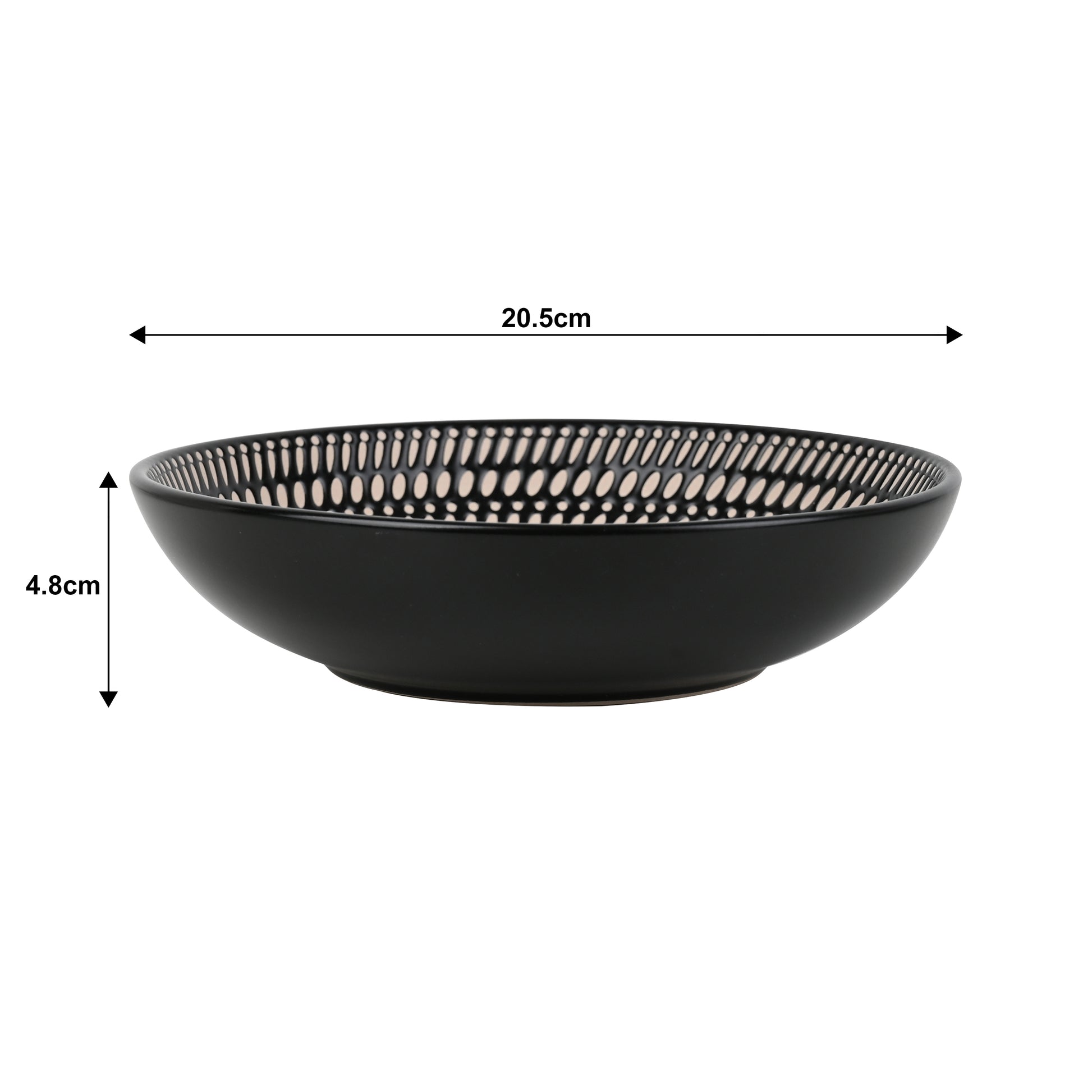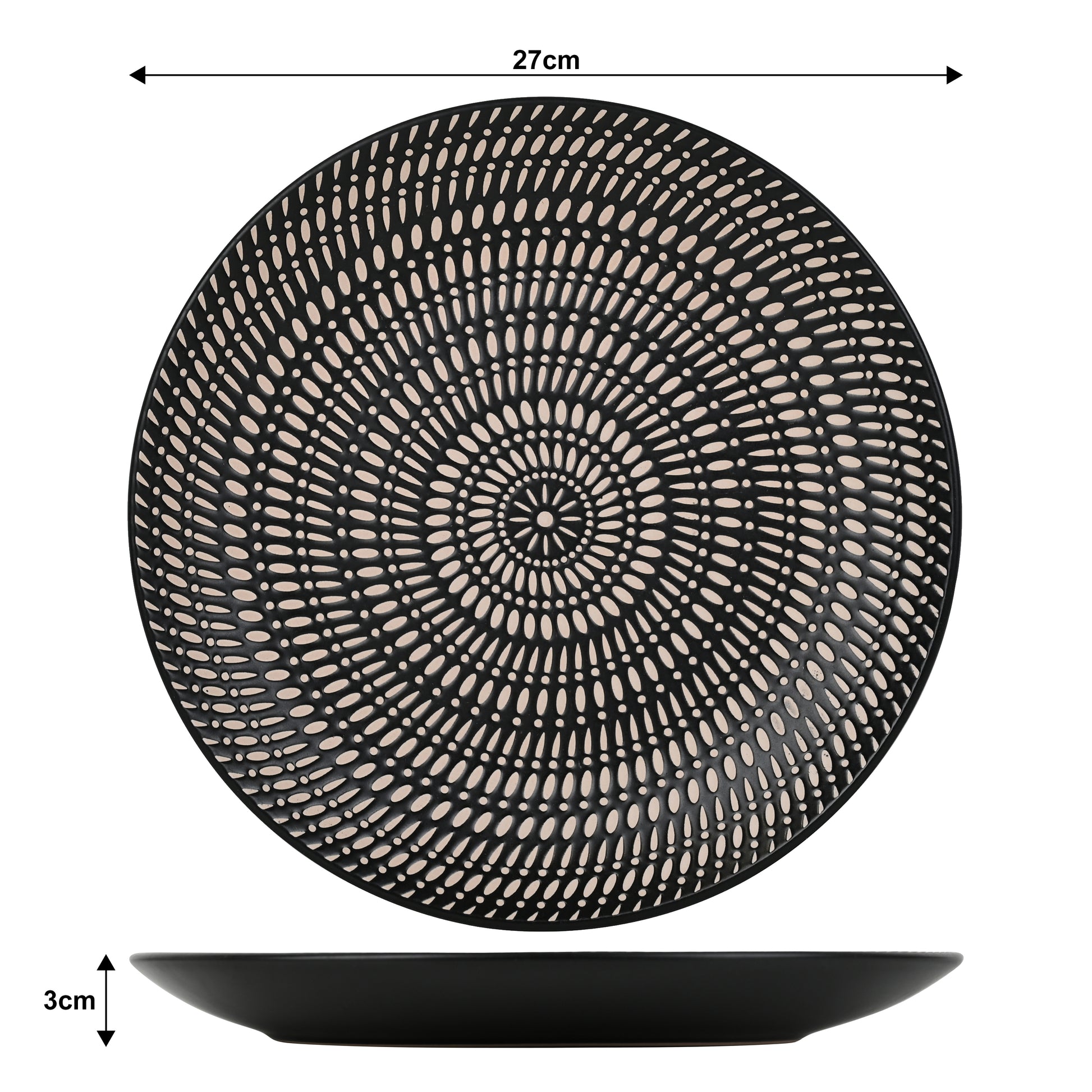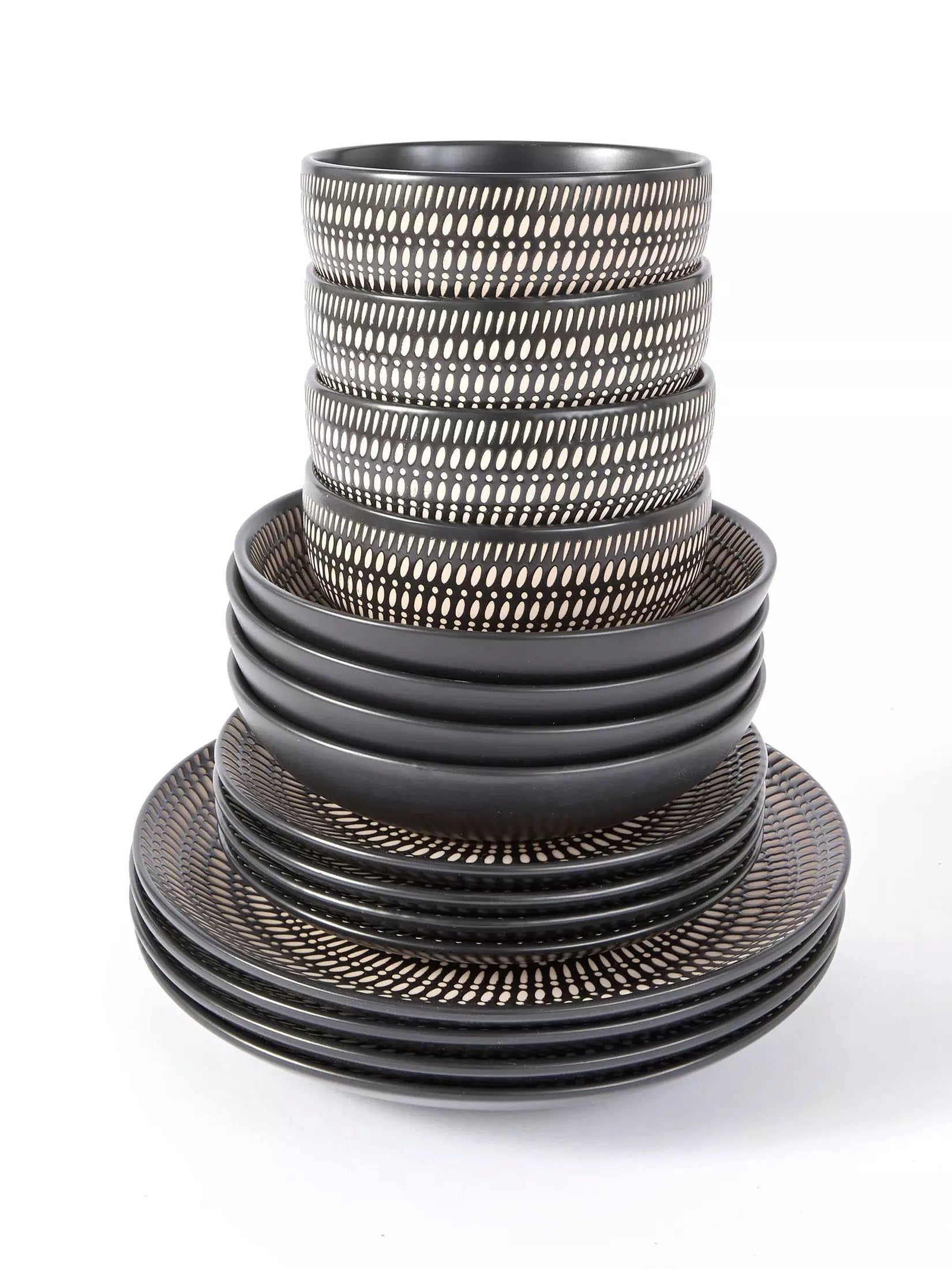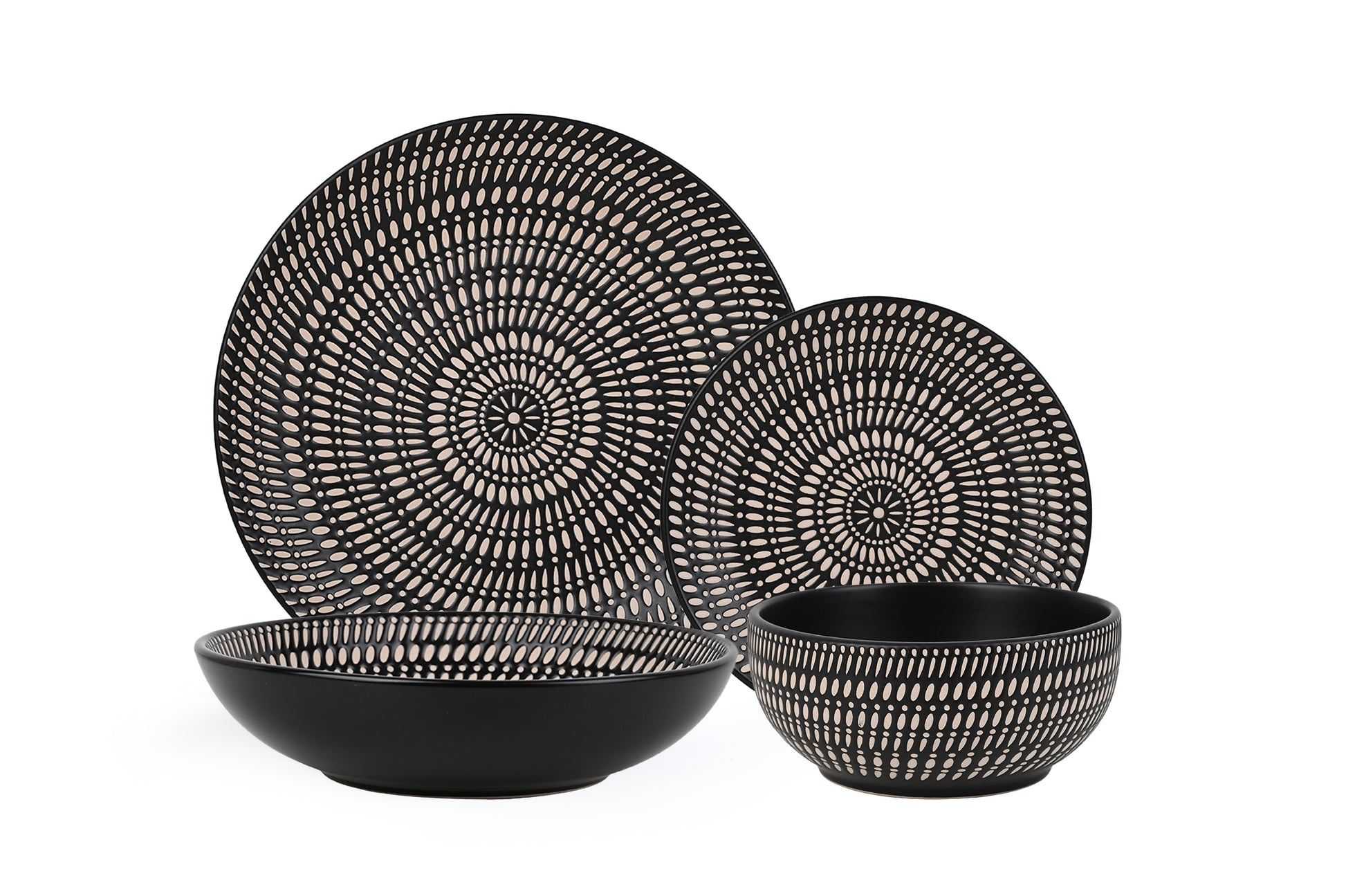 Pad Print Black Stoneware Dinner Set, 16 Pieces