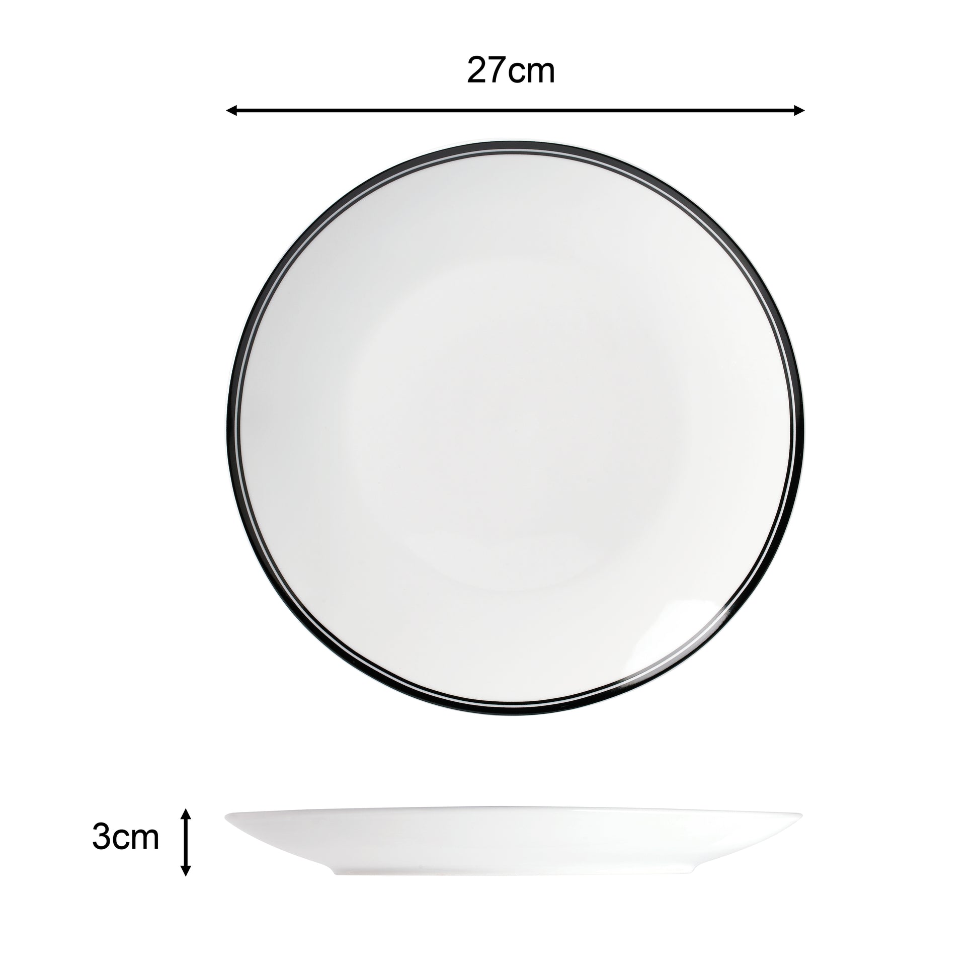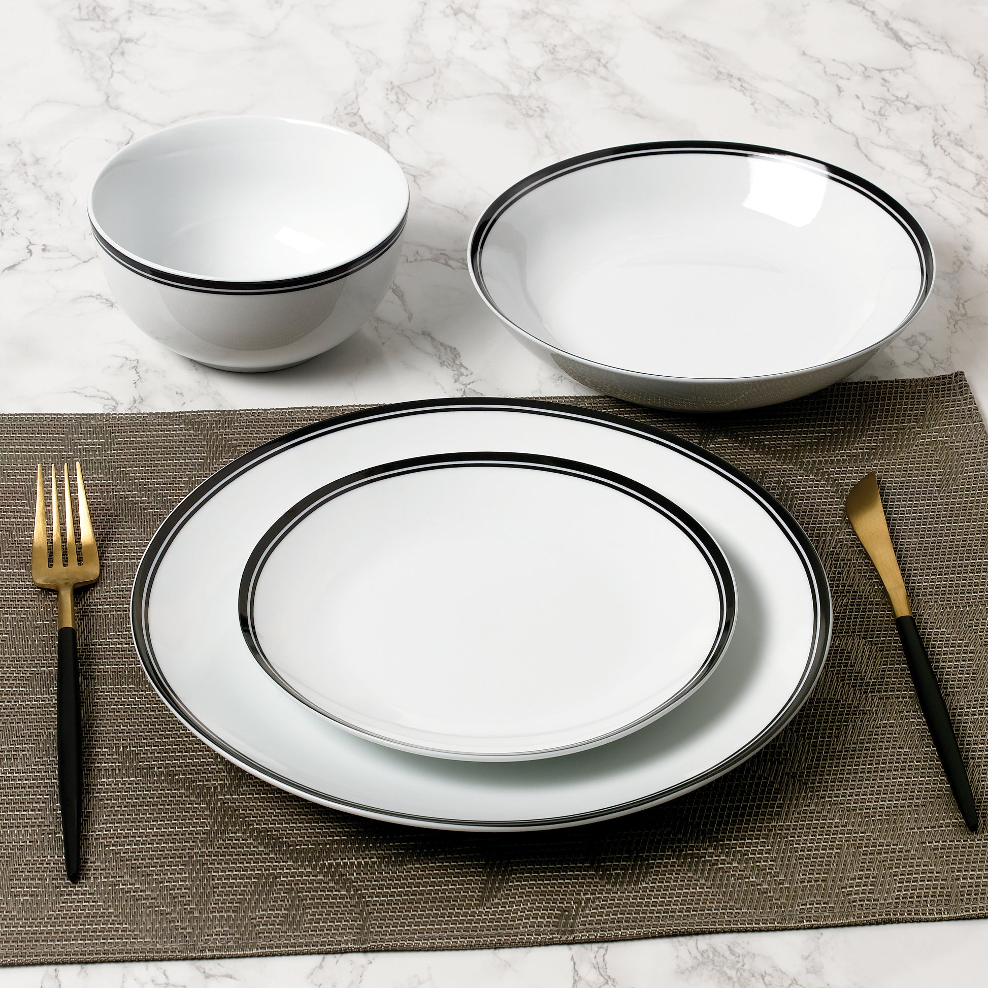 St Ives Stripe Porcelain Dinnerware Set - Black, 16 Pieces