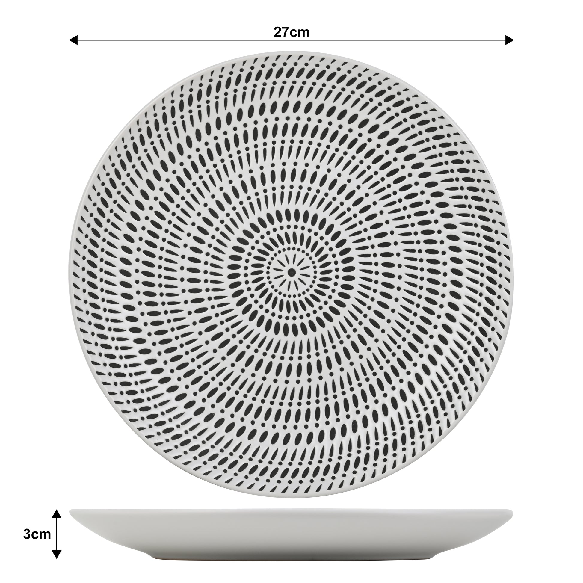 White Pad Print Stoneware Dinner Set, 16 Pieces