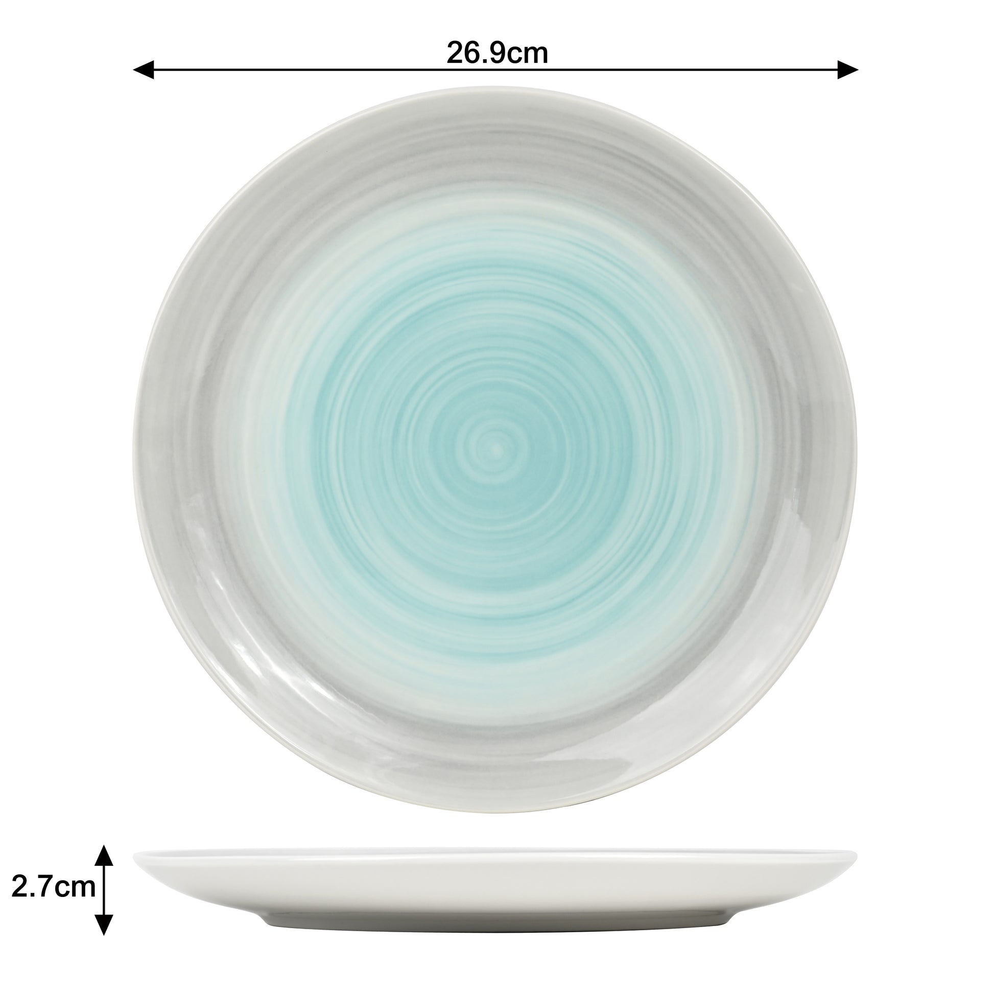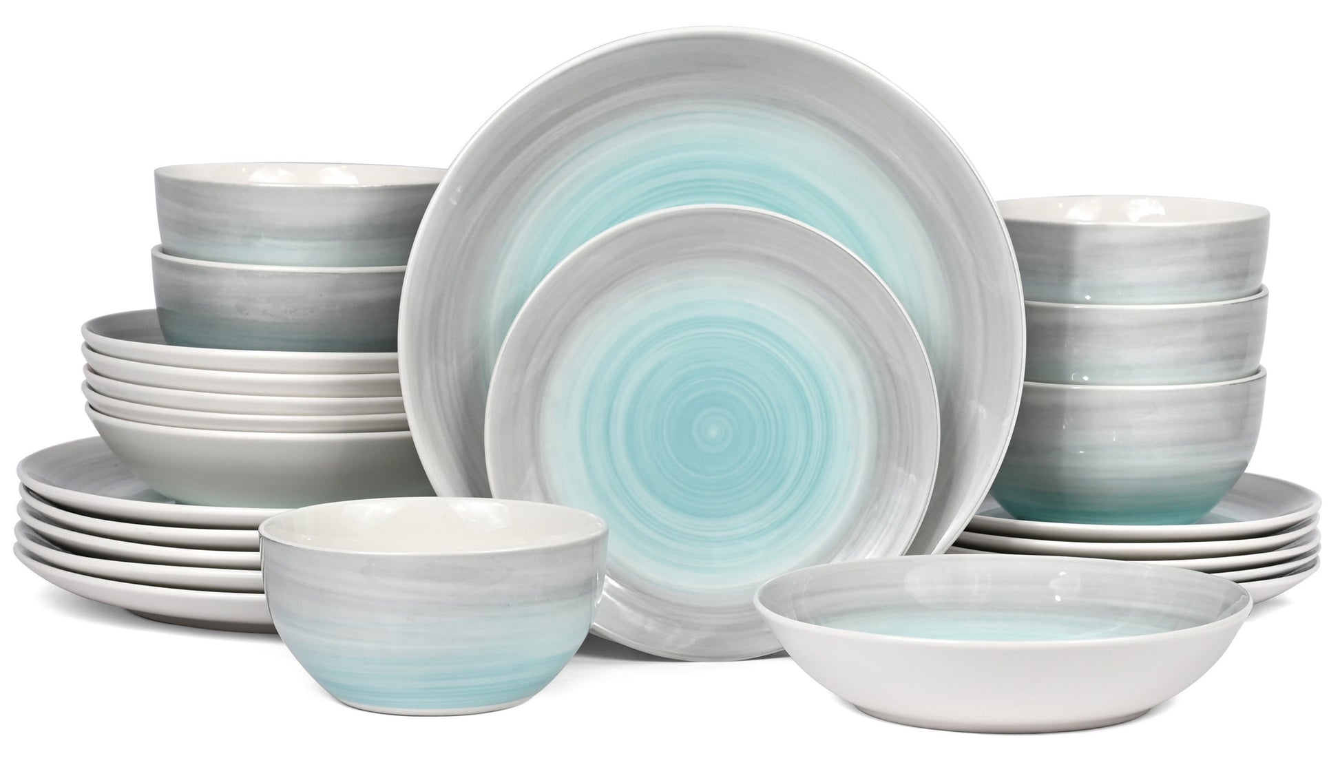 Spinwash Blue & Grey Porcelain Dinnerware Set, 24 Pieces