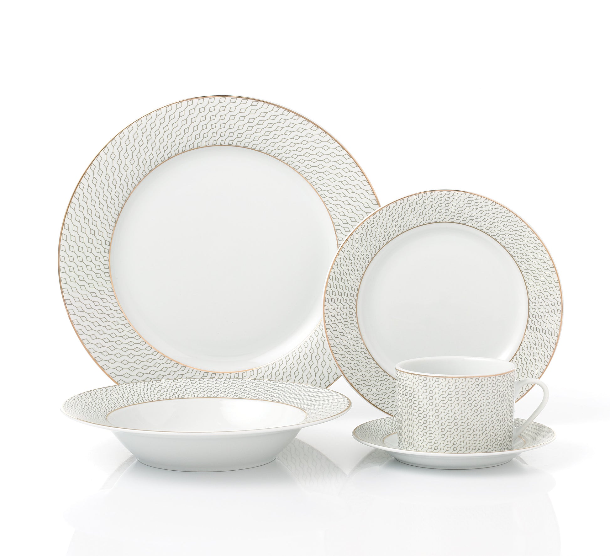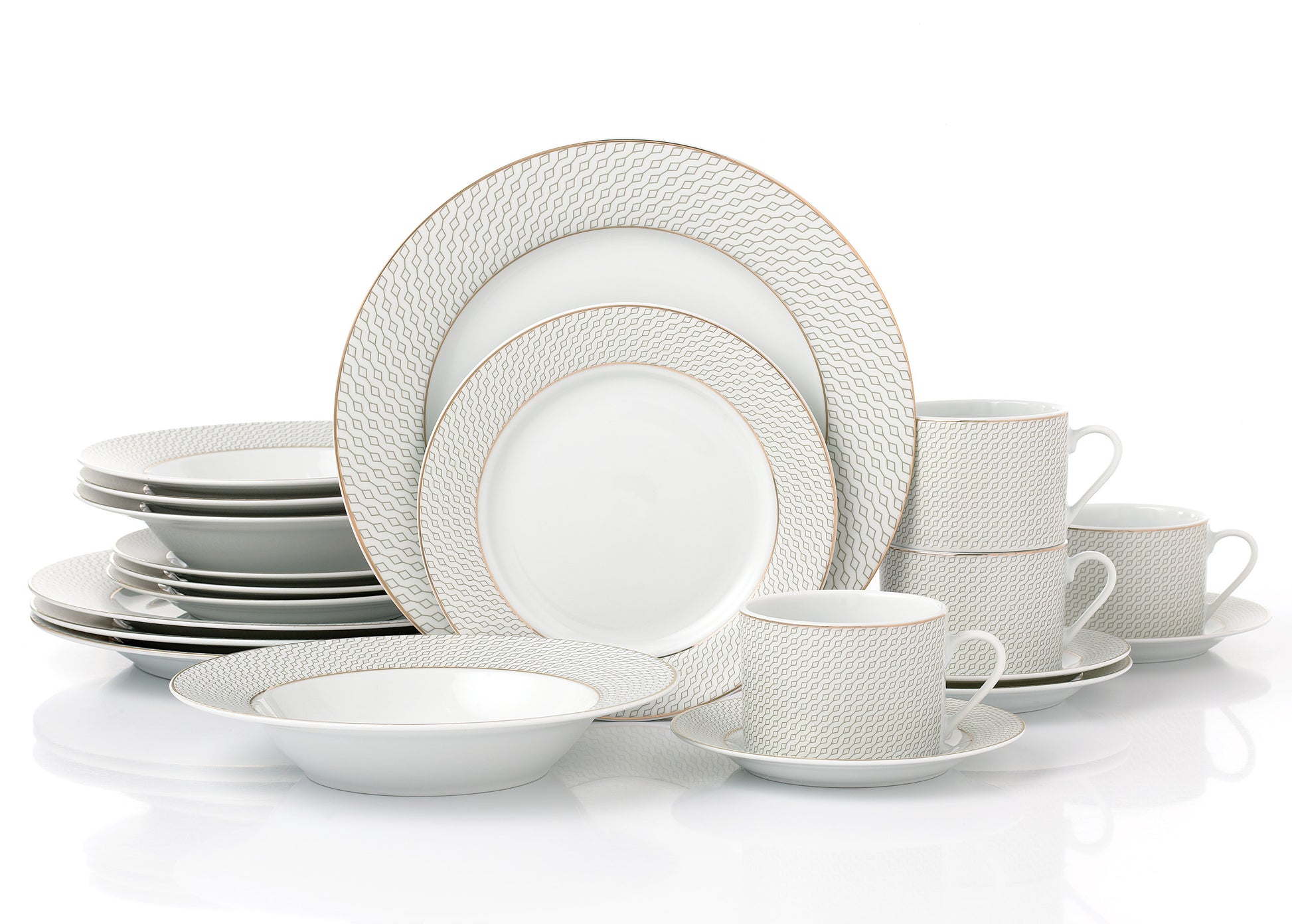 Premium Diamond & Gold Christmas Porcelain Dinnerware, 20 Pieces
