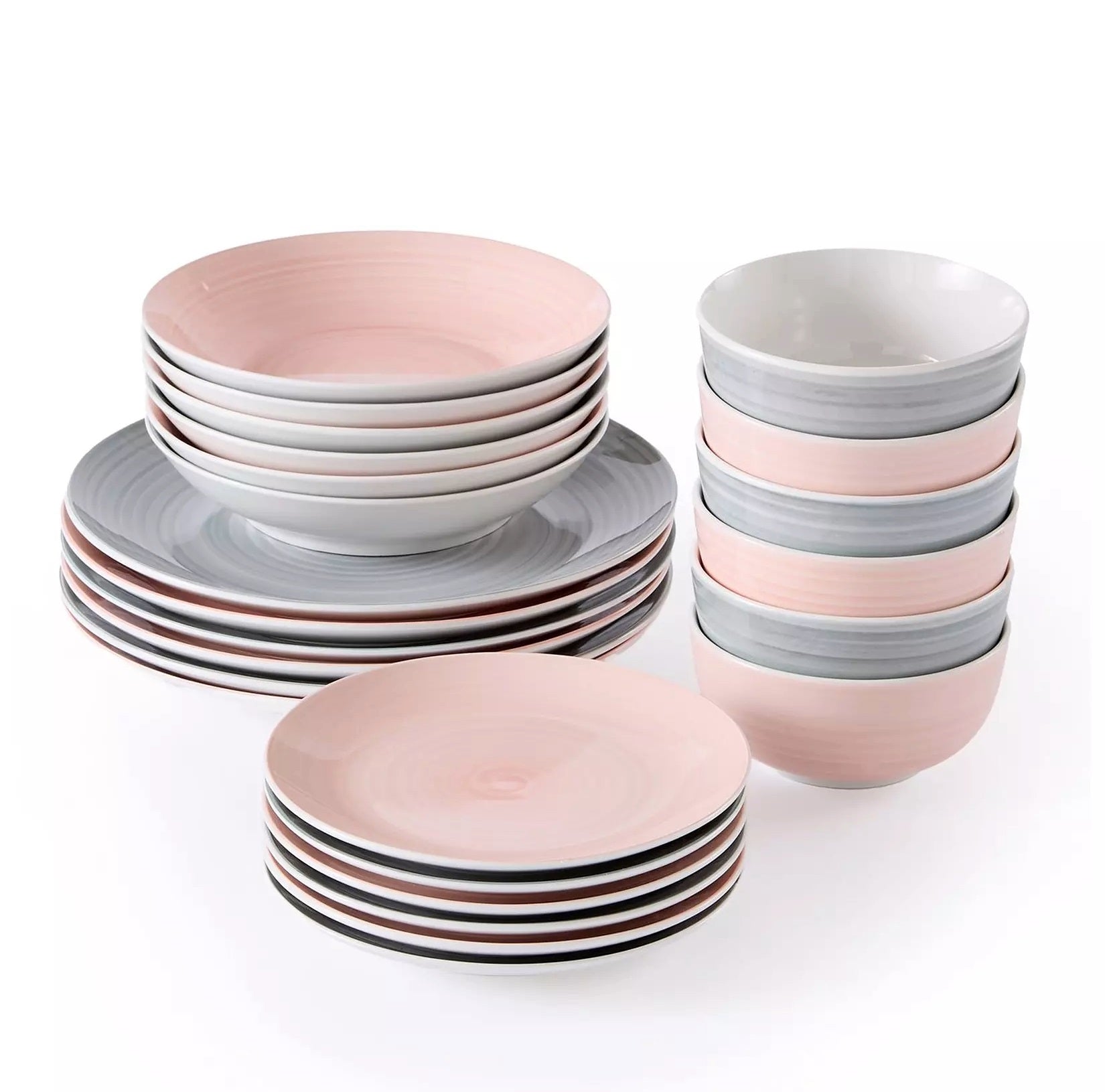Spinwash Pink & Grey Porcelain Dinnerware Set, 24 Pieces