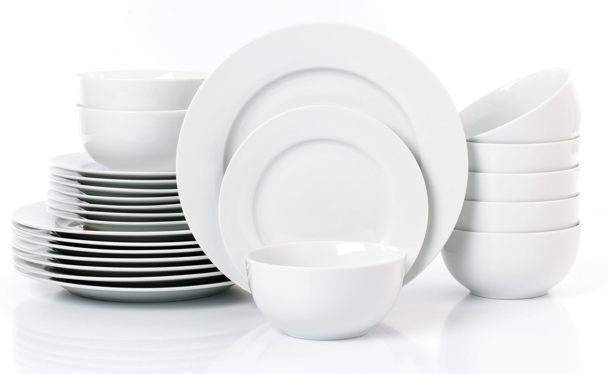 Waterside White Rim Porcelain Dinnerware Set, 24 Pieces