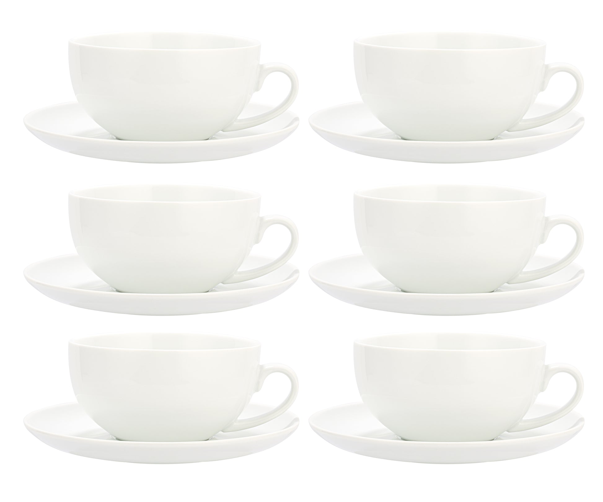 Large Cappuccino Porcelain Cups & Saucers, 6 Pieces